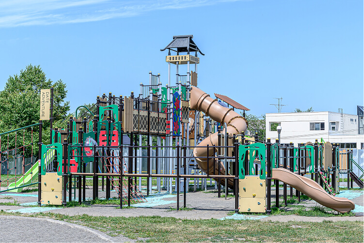 総合公園だて歴史の杜内にある大型遊具で大はしゃぎ!